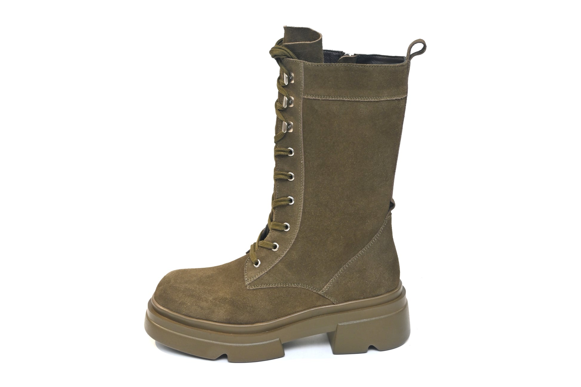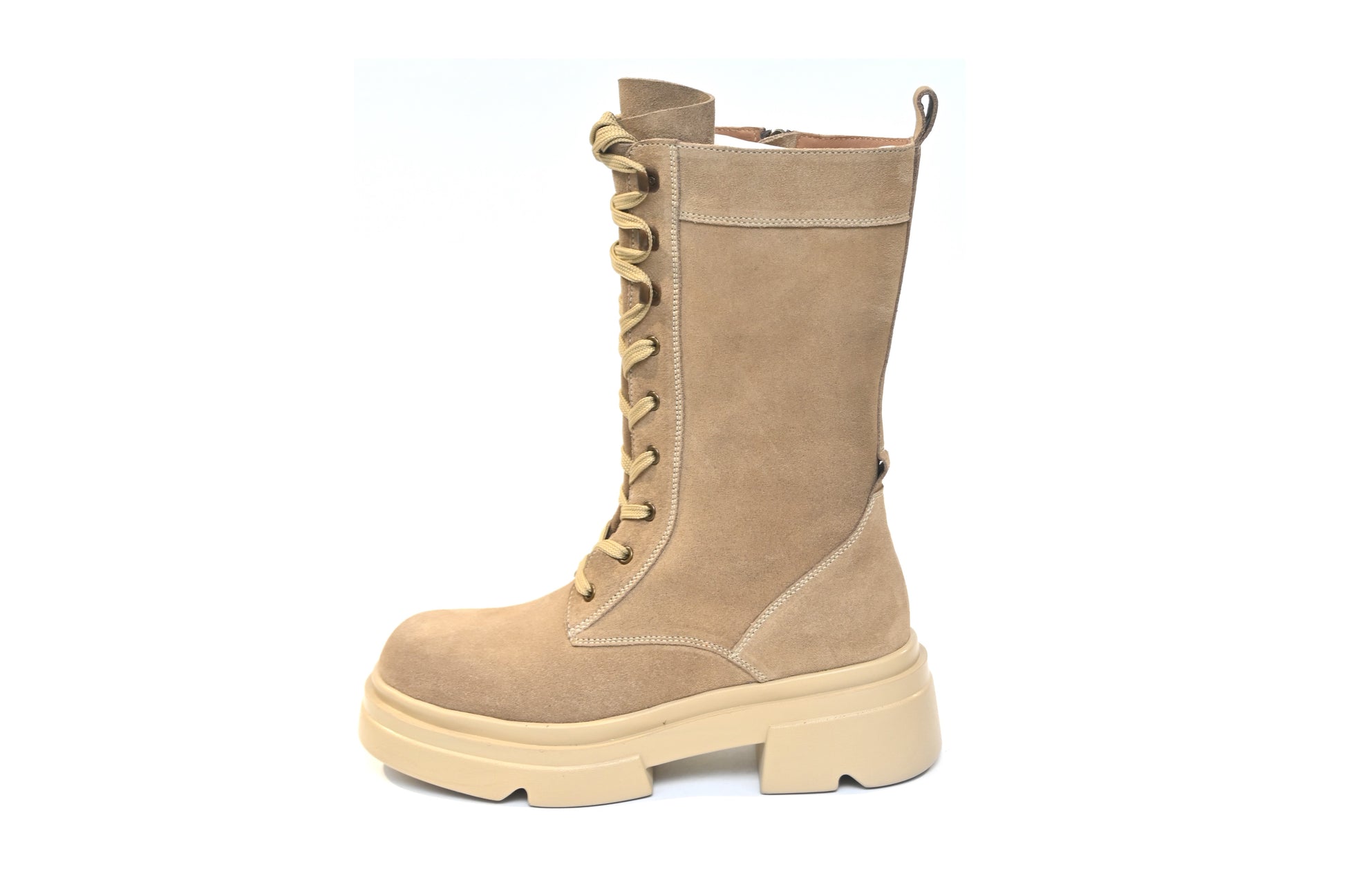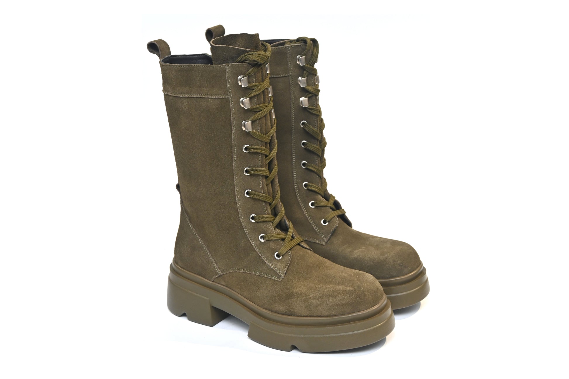 Anfibio in pelle scamosciata con lacci , fondo in gomma 50mm
