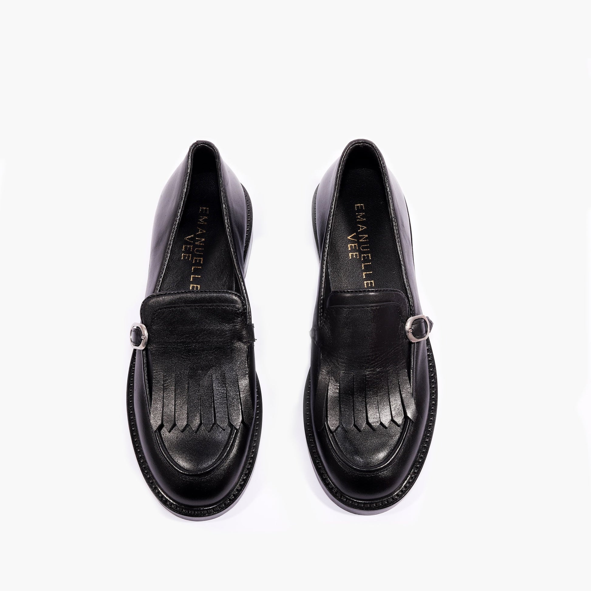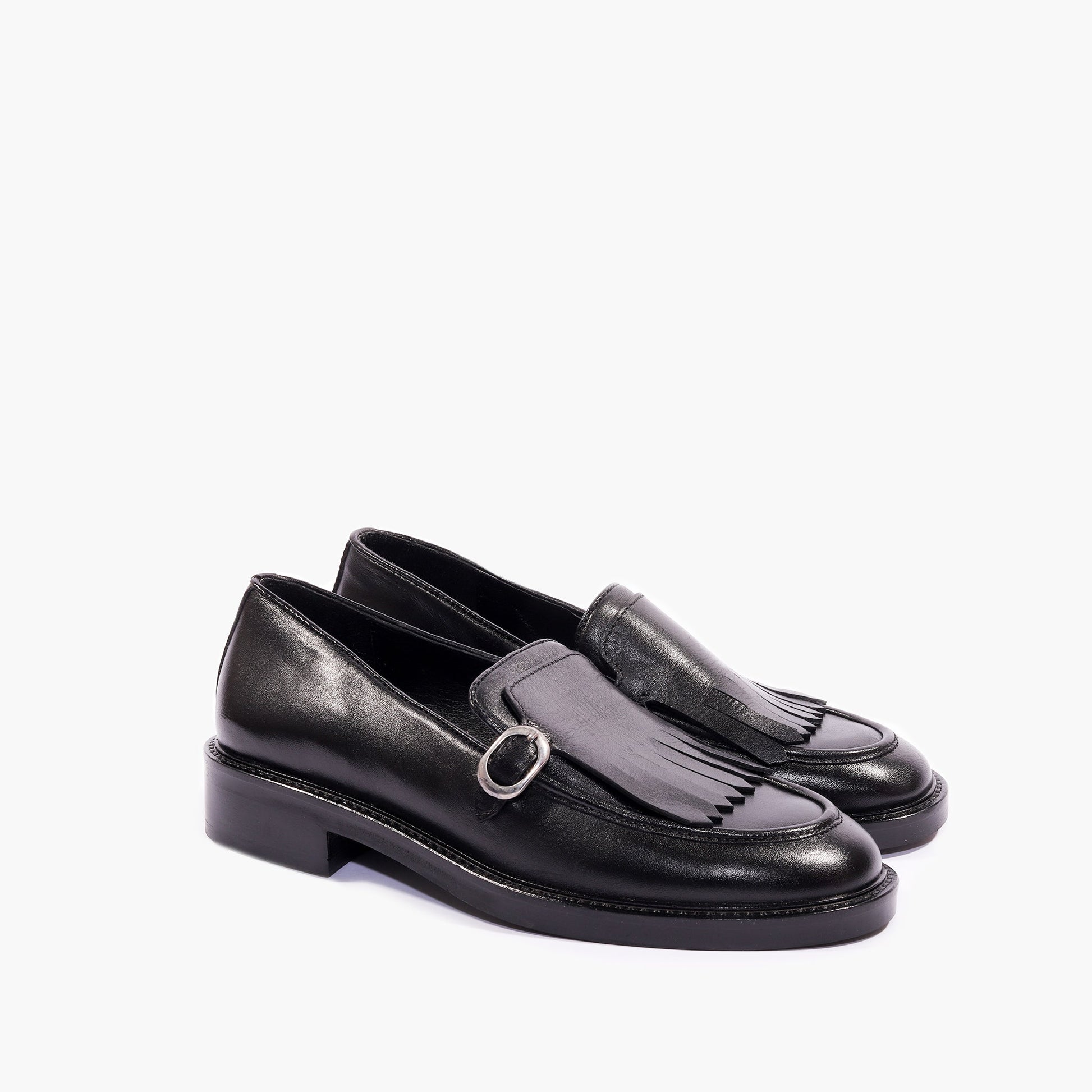 Mocassino con frange, in pelle di vitello semi lucida, fondo in gomma 20mm