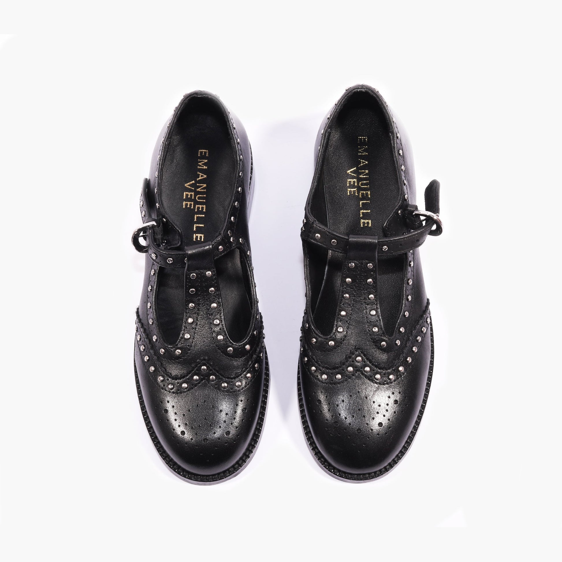 Bebe' con borchie in pelle di vitello semi lucida, fondo in gomma 20mm