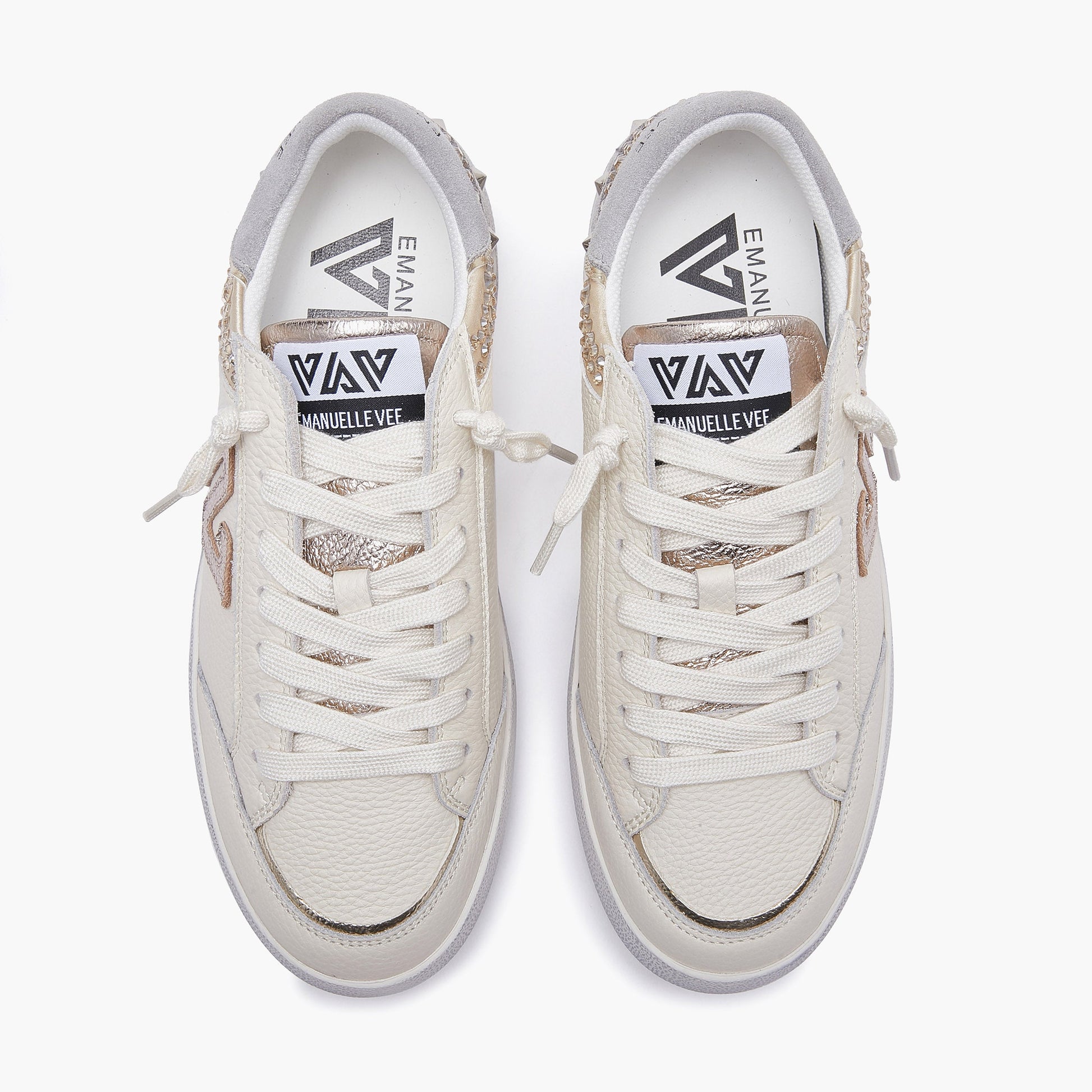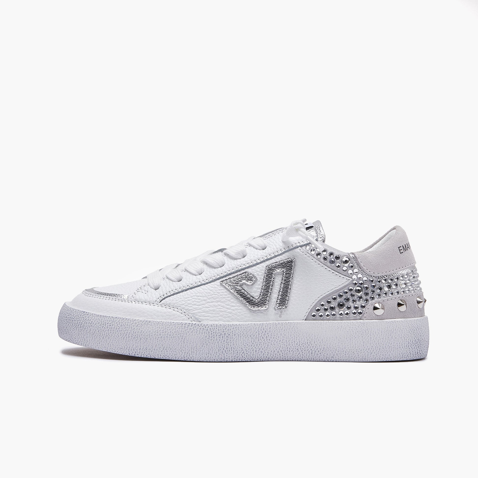 Sneaker a cassetta in in pelle piu' dettagli strass a caldo, suola in gomma