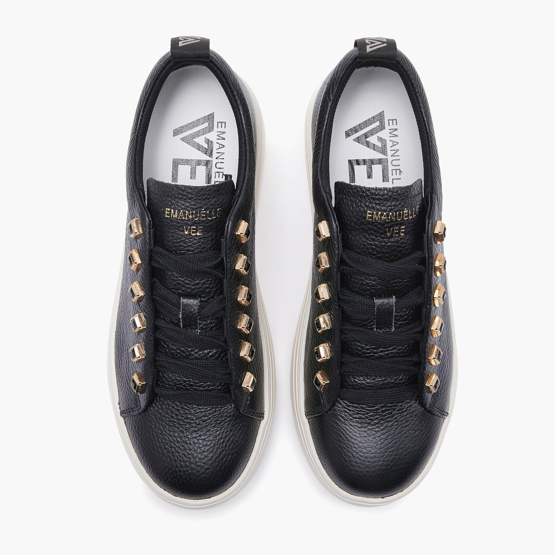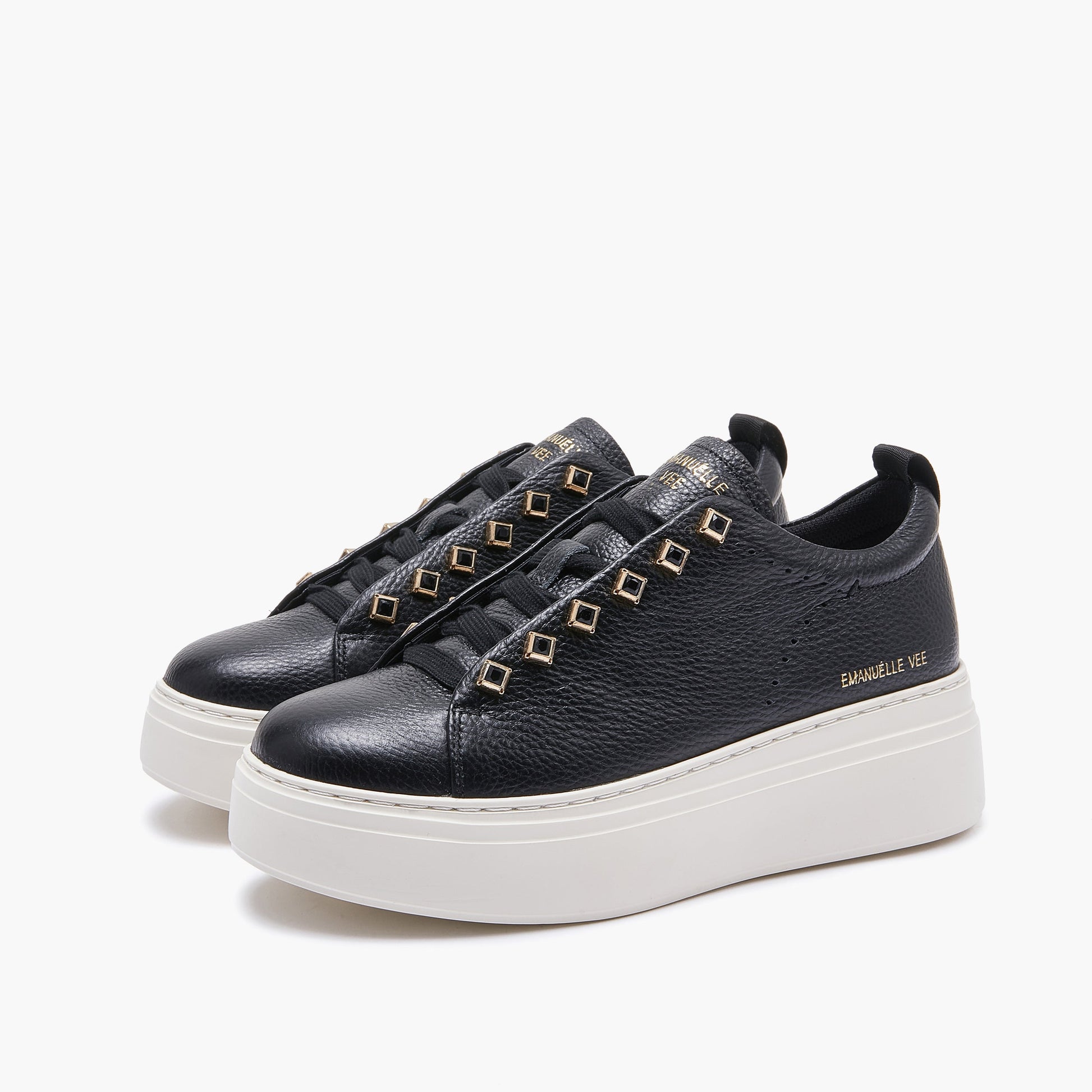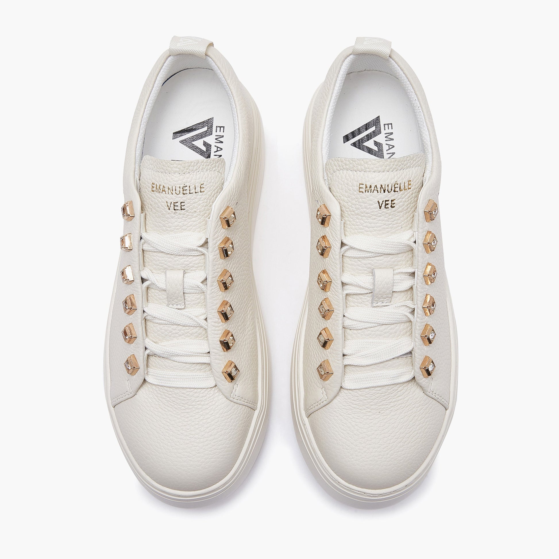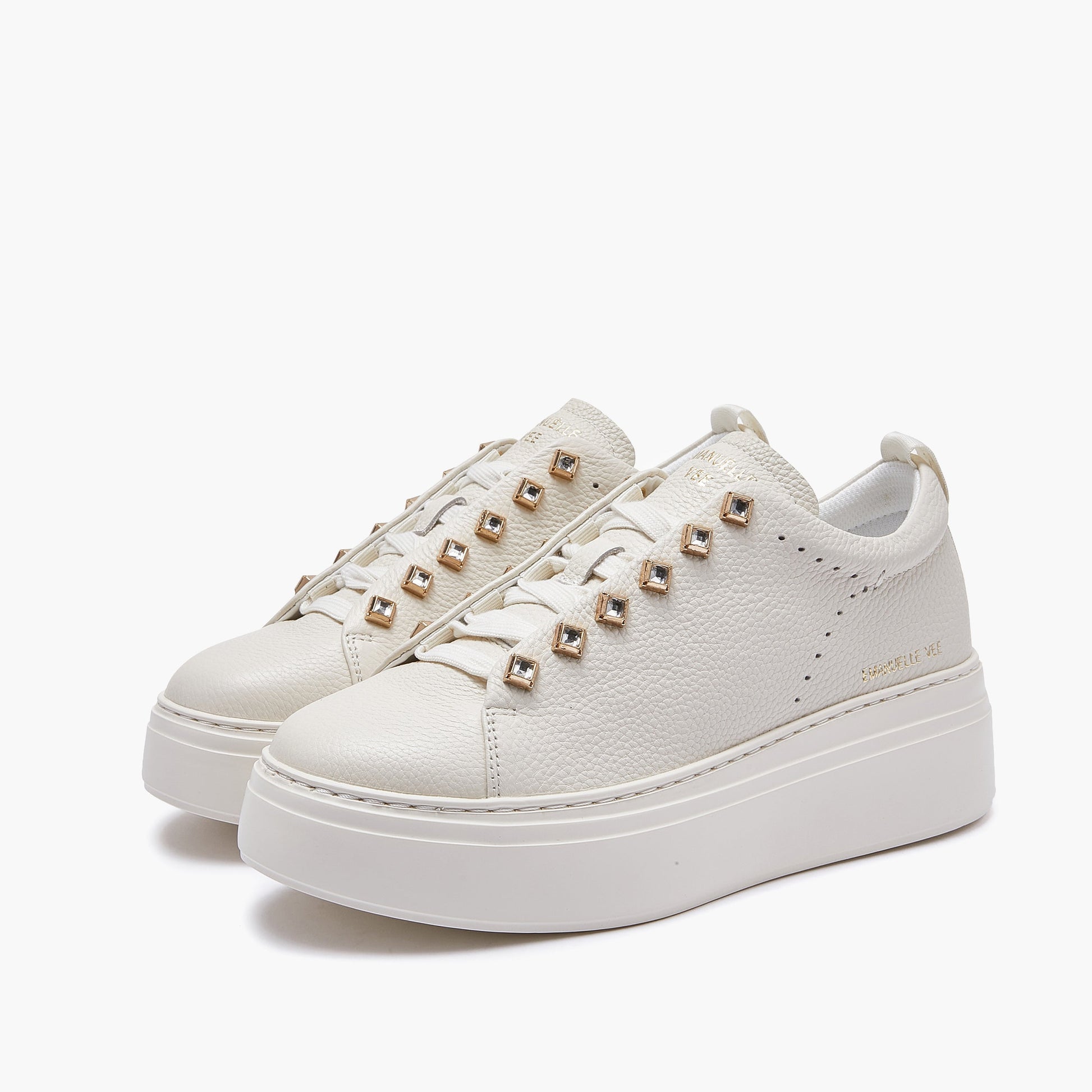 Sneaker a cassetta in pelle bottalata, con dettagli strass, suola in eva leggera