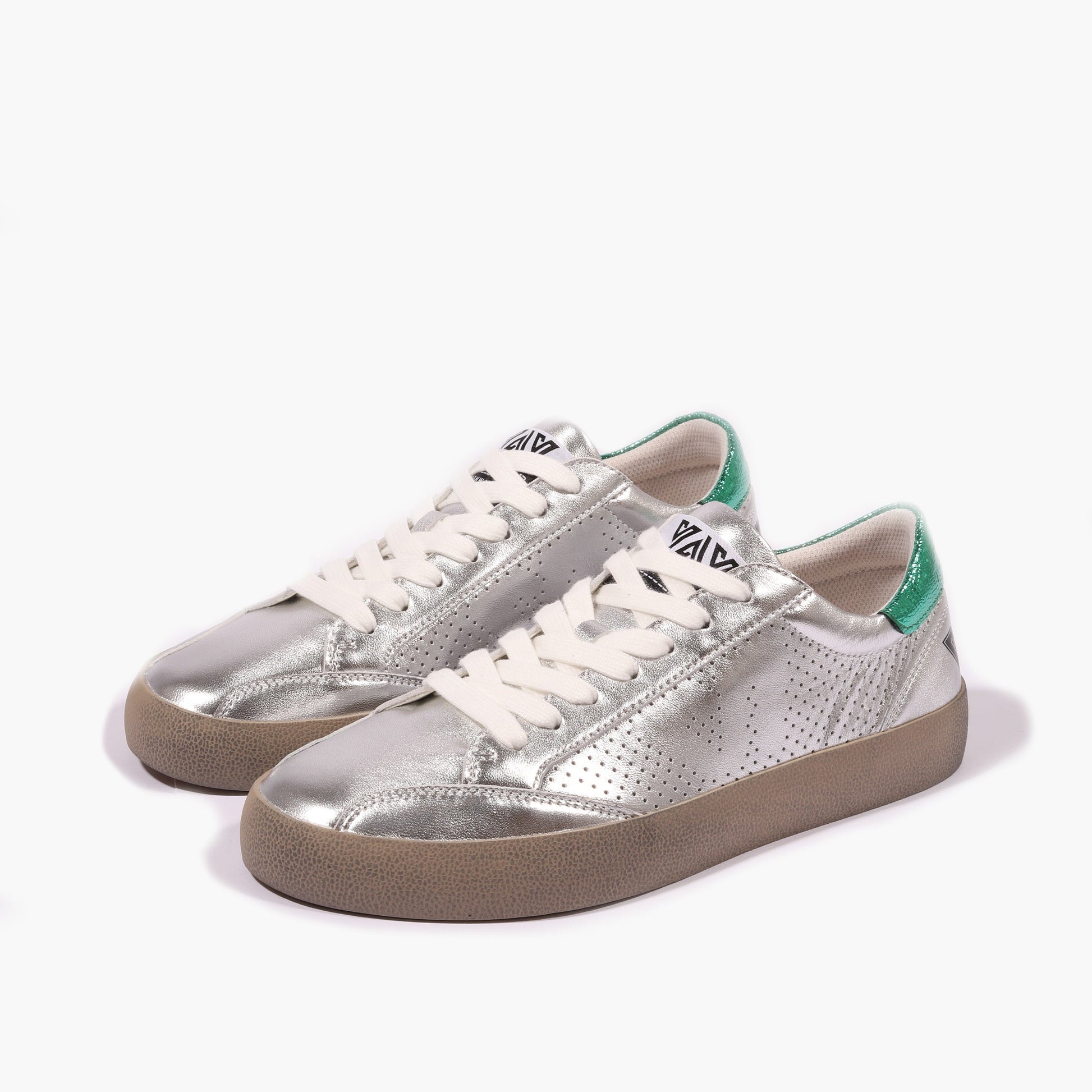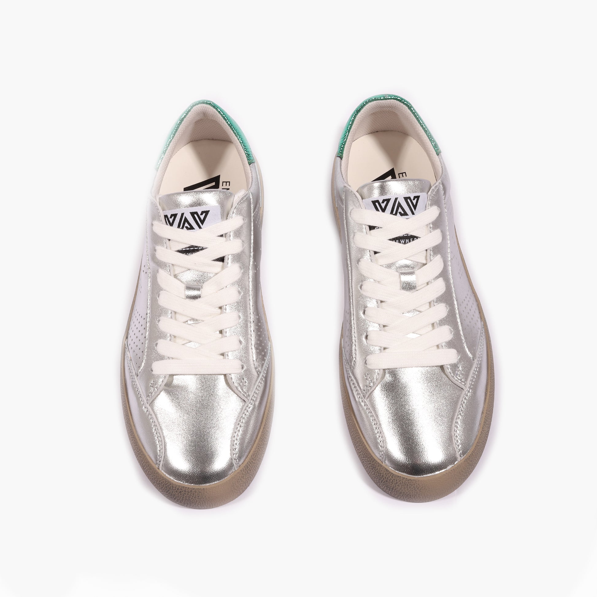 Sneakers allacciata in pelle laminata traforata e fondo a cassetta