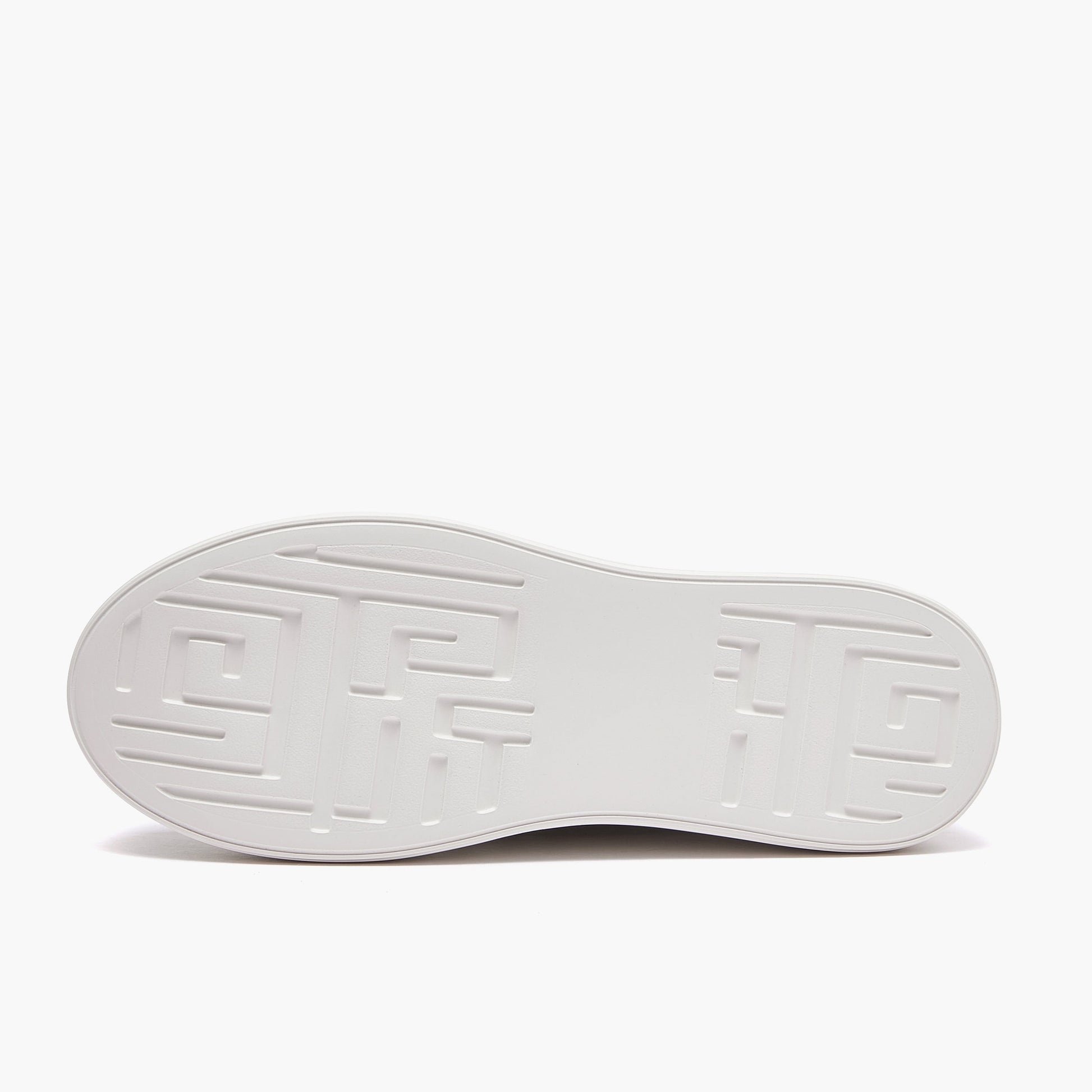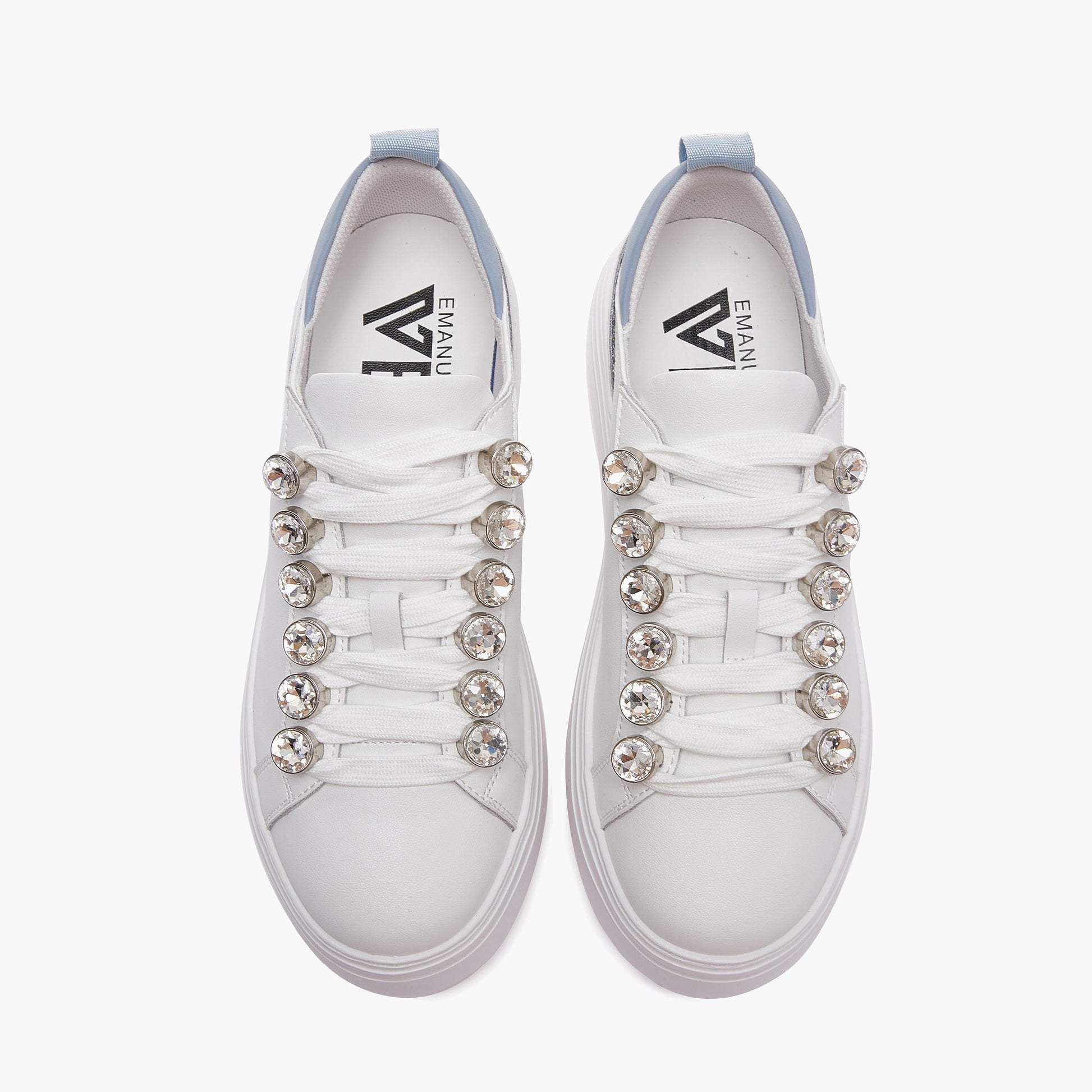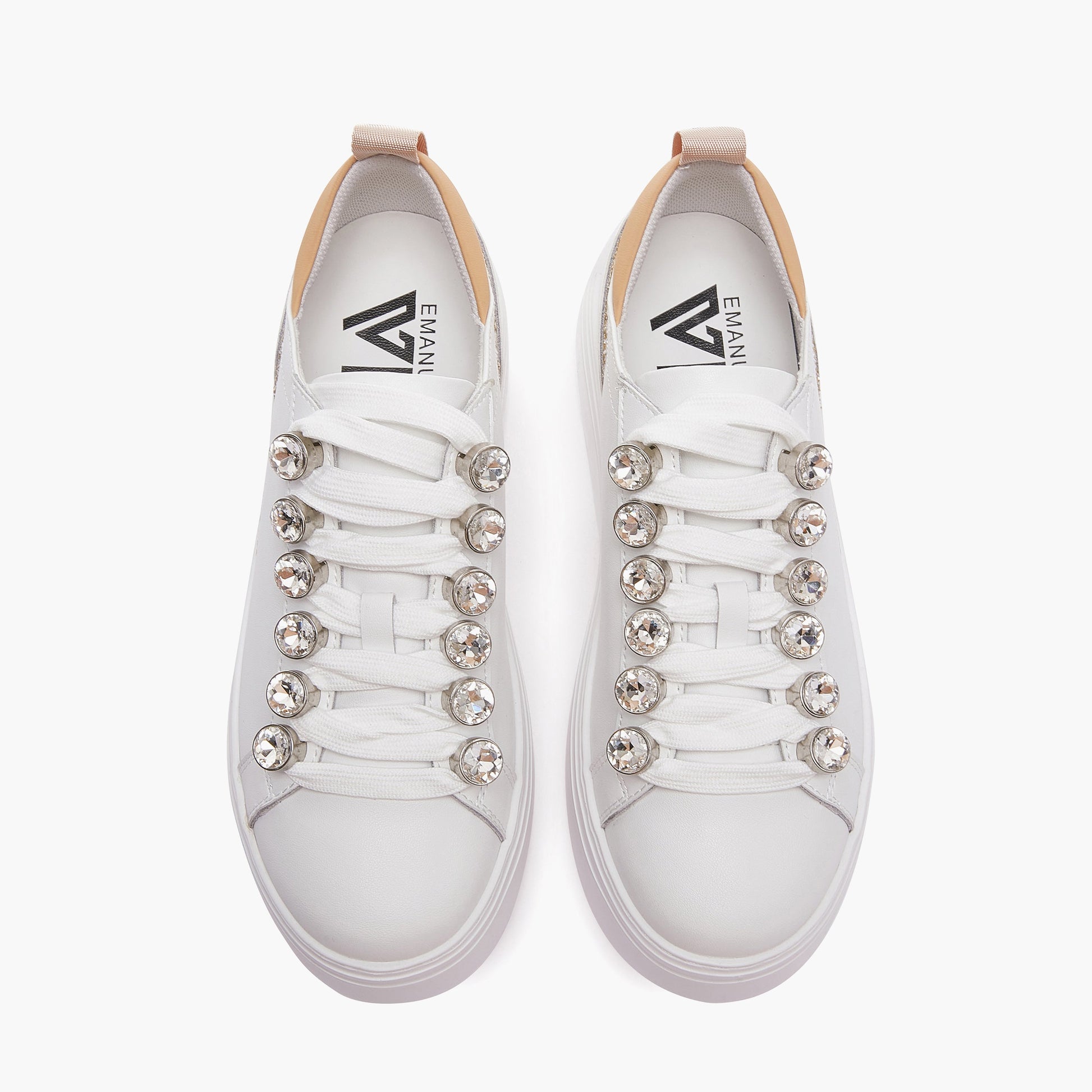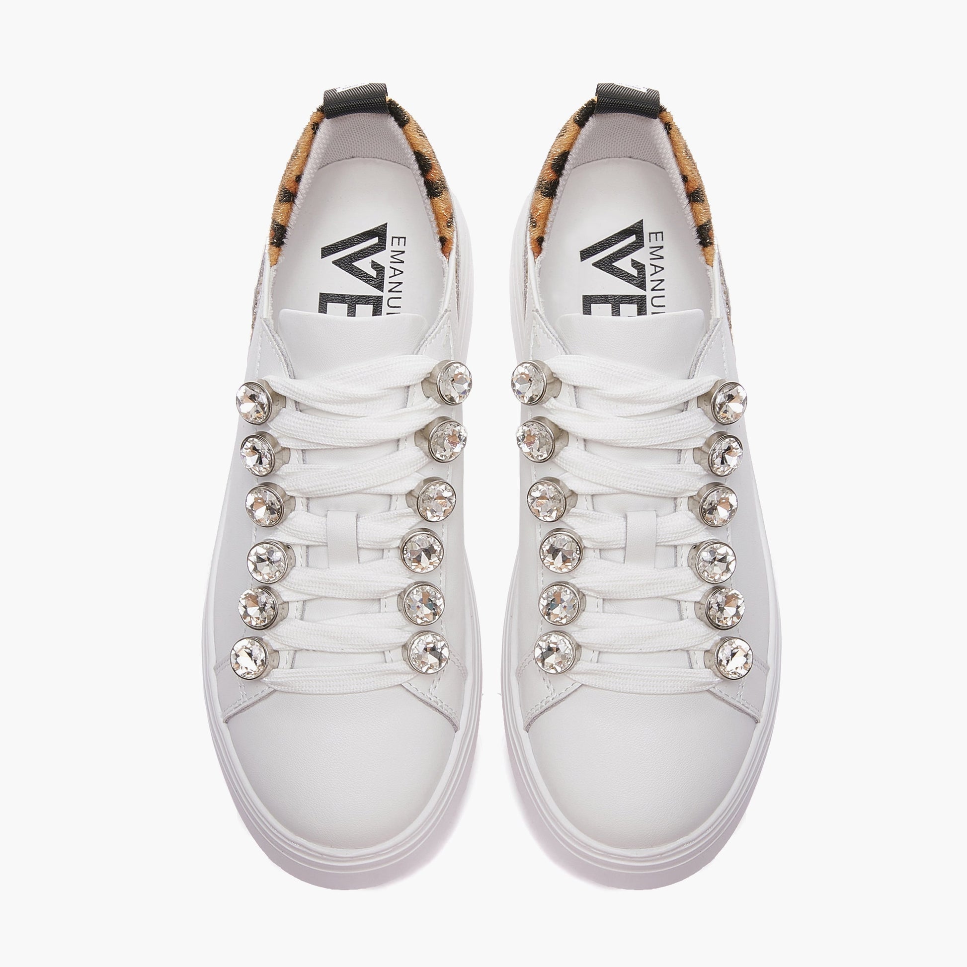Sneaker a cassetta in pelle con dettagli in glitter e pelle a contrasto, decoro strass sull'allacciatura