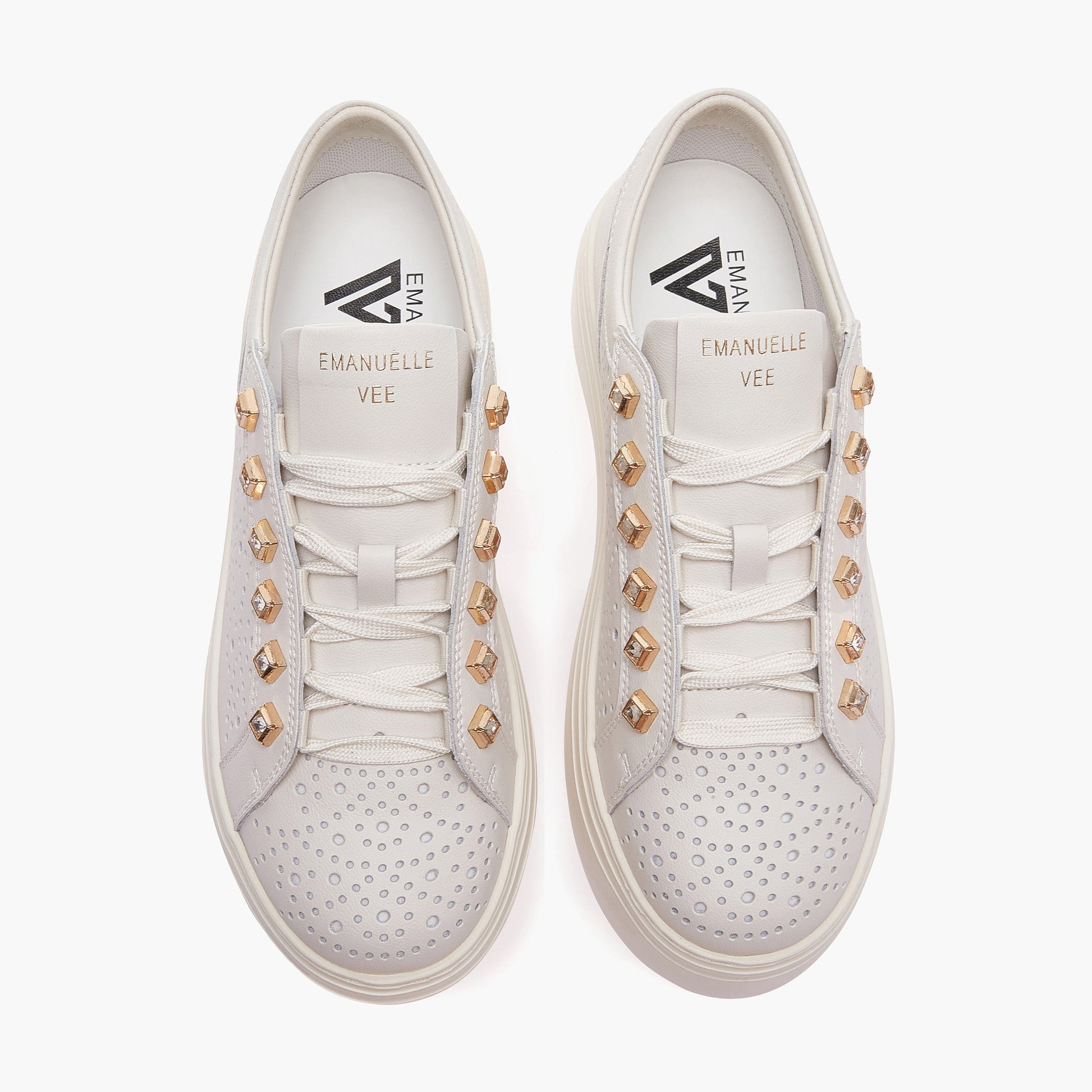 Sneakers in pelle traforata, strass sull'allacciatura e fondo a cassetta extra light