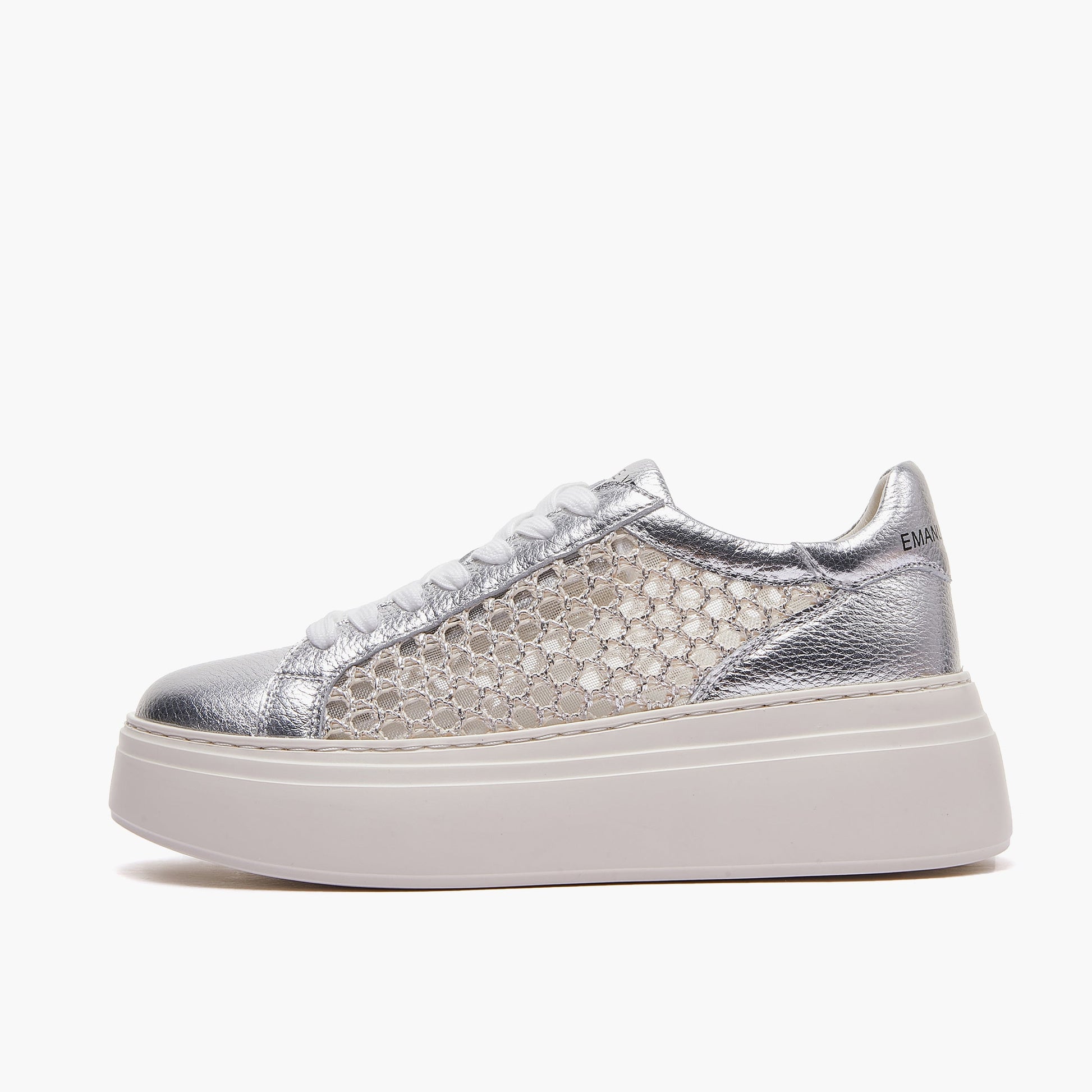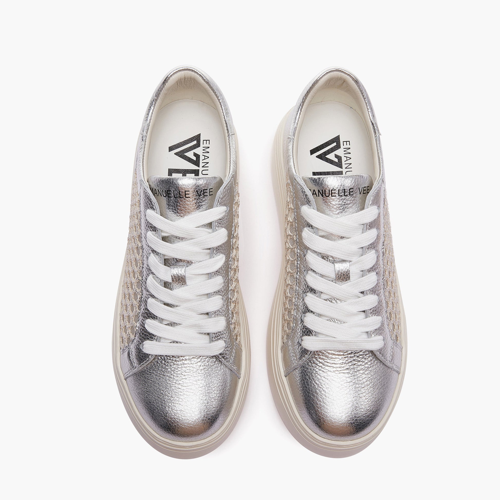 Sneakers allacciata, in pelle laminata e raffia laterale in tinta, fondo a cassetta extra light