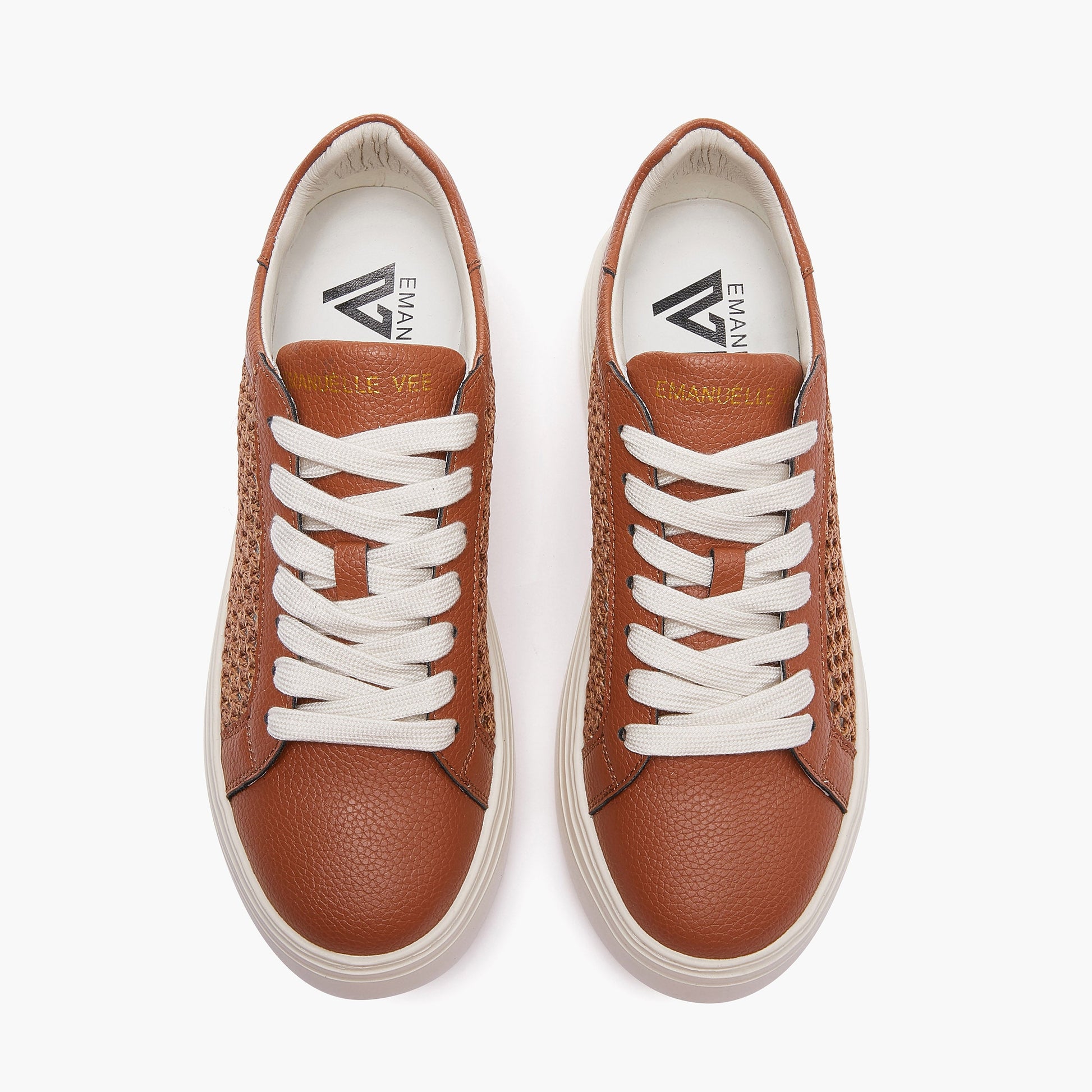 Sneakers allacciata in pelle e raffia laterale in tinta, fondo a cassetta extra light