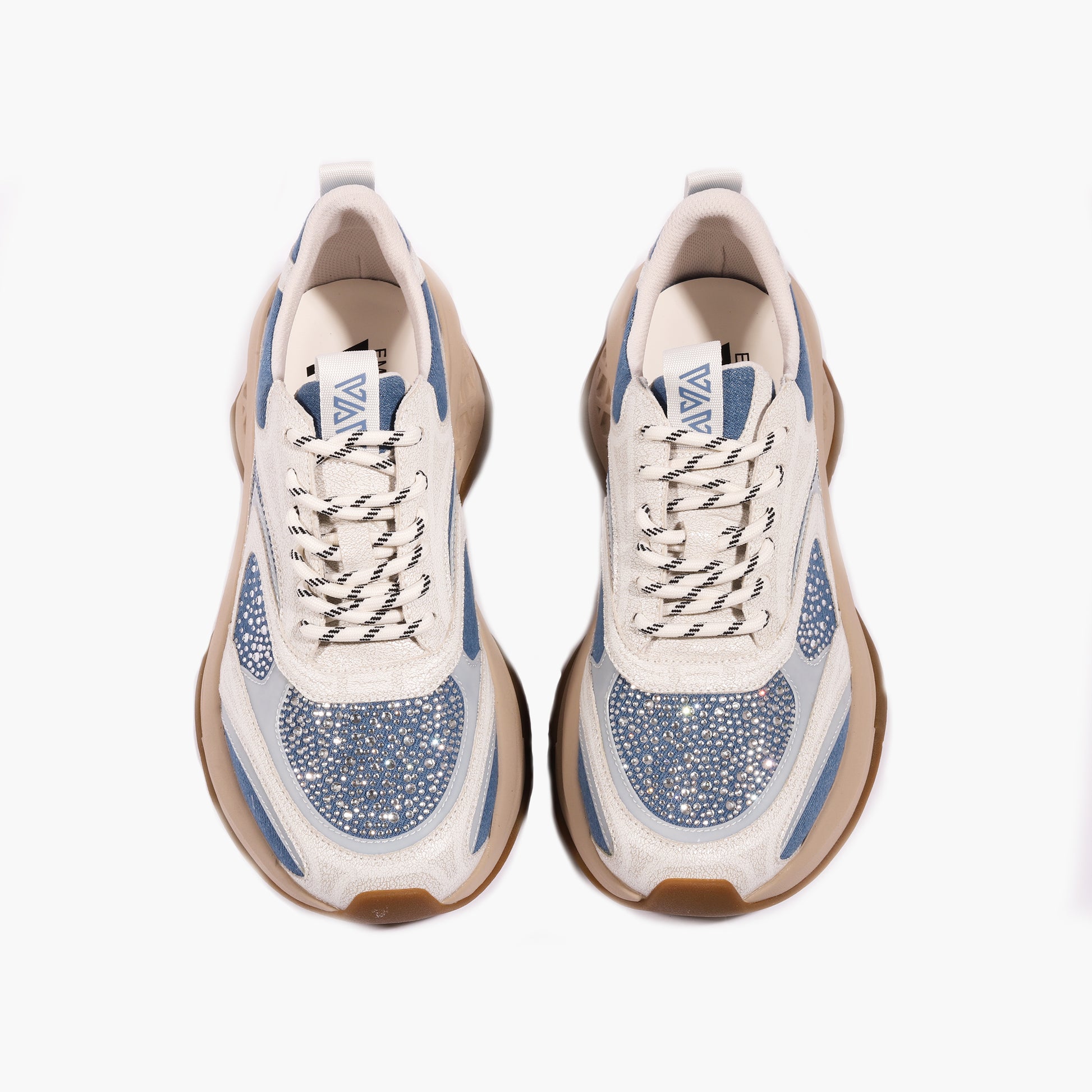 Running allacciata in pu effetto cracle' e jeans con strass, suola extra light